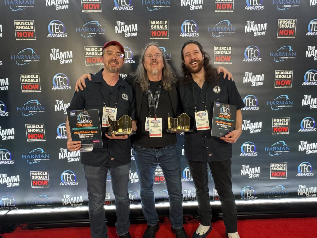 We’re thrilled to share that AEA took home two TEC Awards at the 41st Annual NAMM Technical Excellence & Creativity Awards on January 22nd in Anaheim. The Nuvo N28 Compact Stereo Ribbon Microphone won in the Microphones – Recording category, and the TDI Duo Dual Phantom-Powered Direct Box was honored in the Production Essentials category.