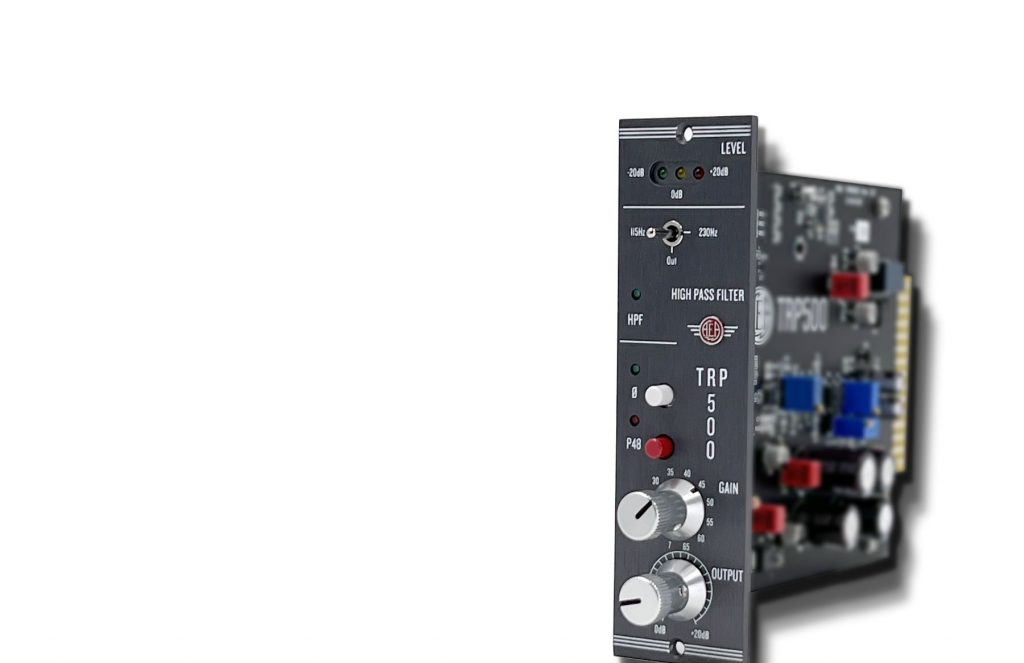 The first product in our 3rd-generation of microphone preamps, the TRP500 leans on the side of neutral but is unlike other "clean" preamps because of its rich and musical tonality. Optimized for ribbon mics, the TRP500 offers up to 85dB of effortless gain for any microphone.
