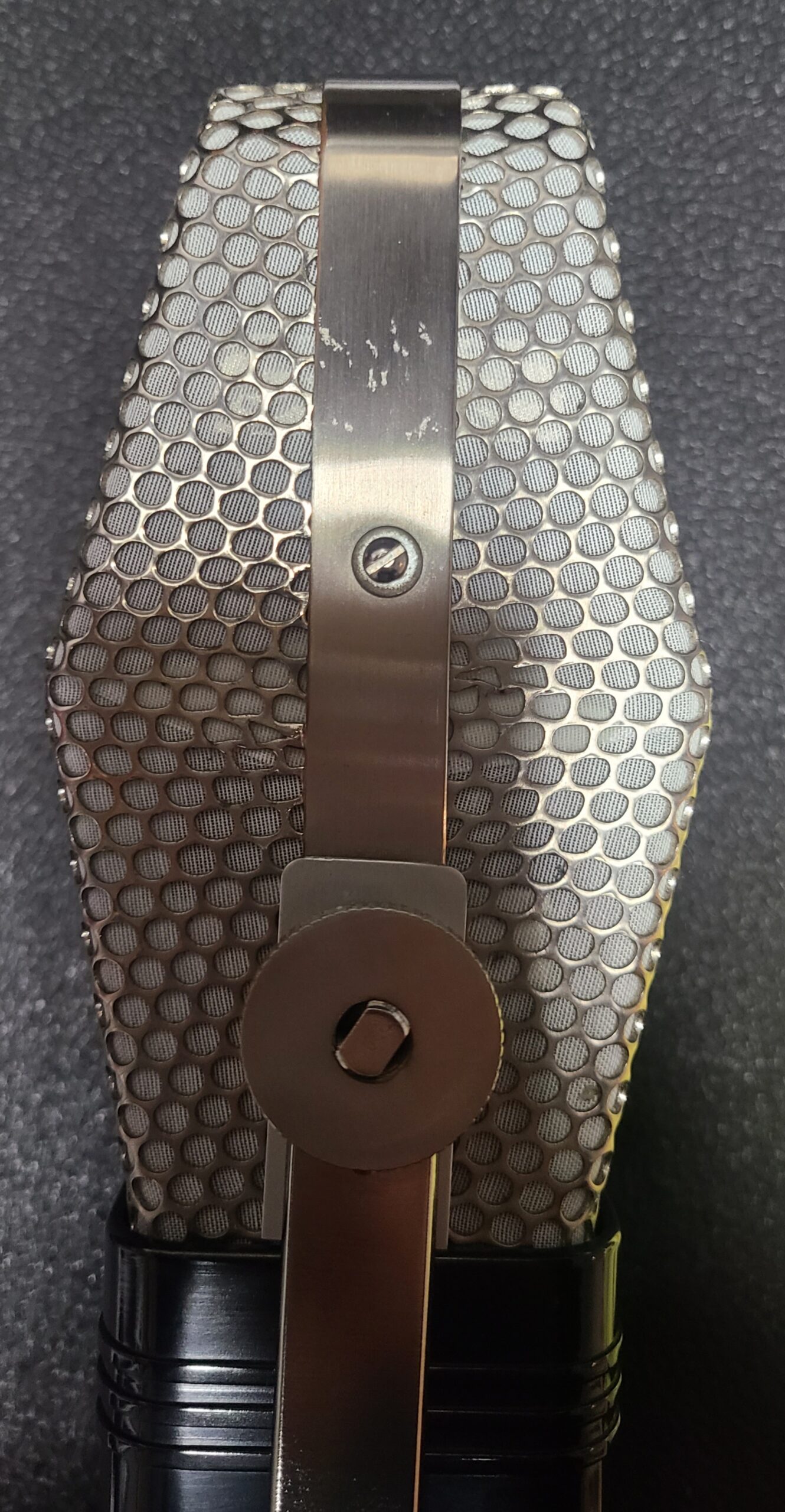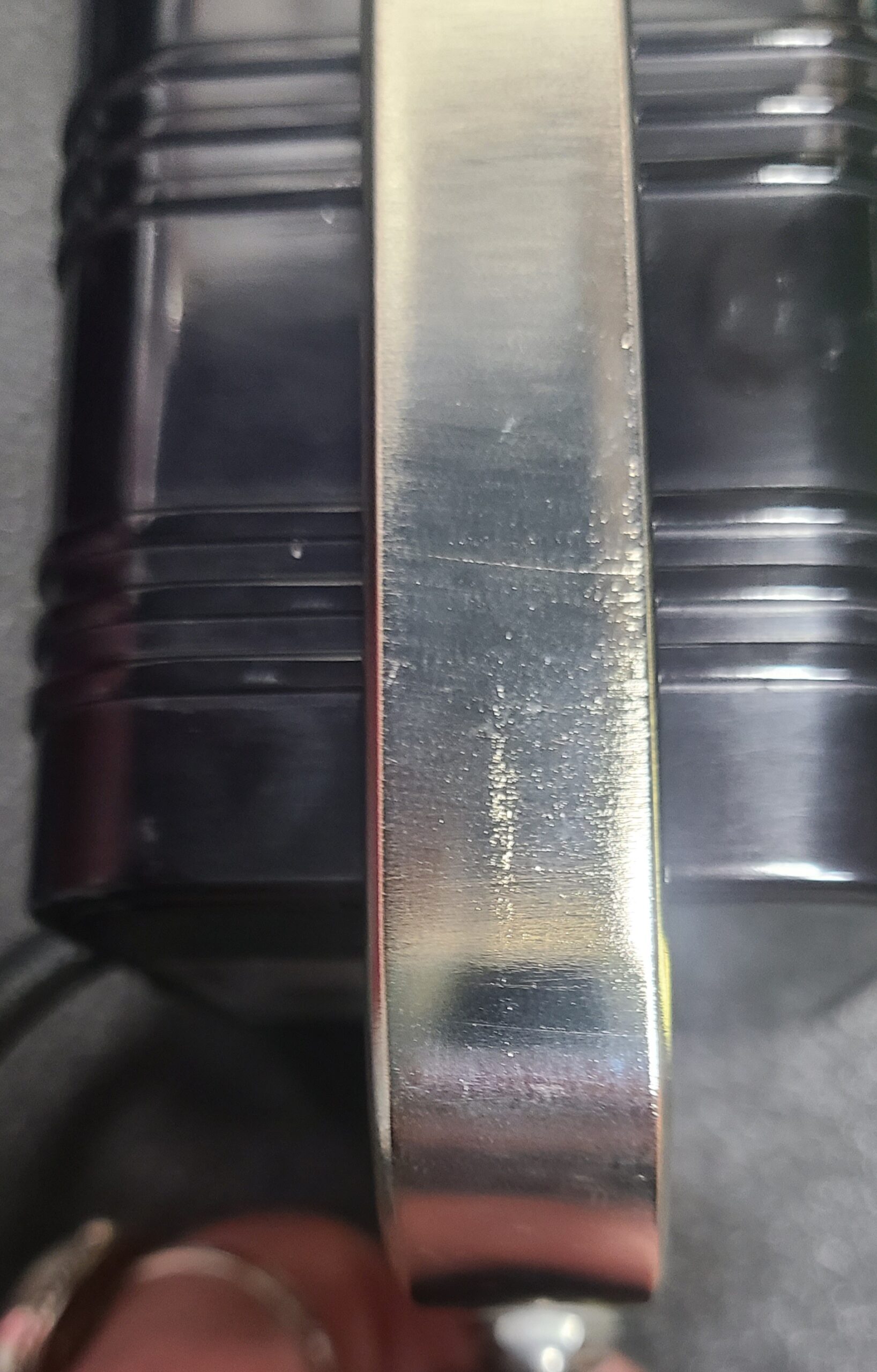 Demo sticker on the front of the cushion mount, scratch on one side of the yoke and a small blemish on the other, small blemish on one side of the grille band & larger blemishes on the top of the other side.