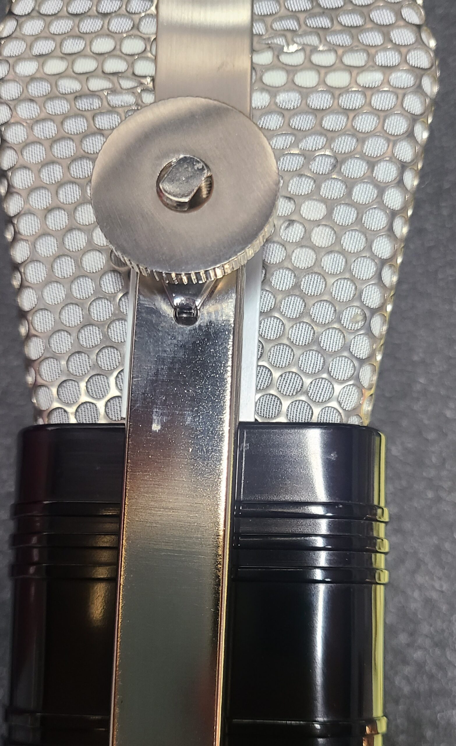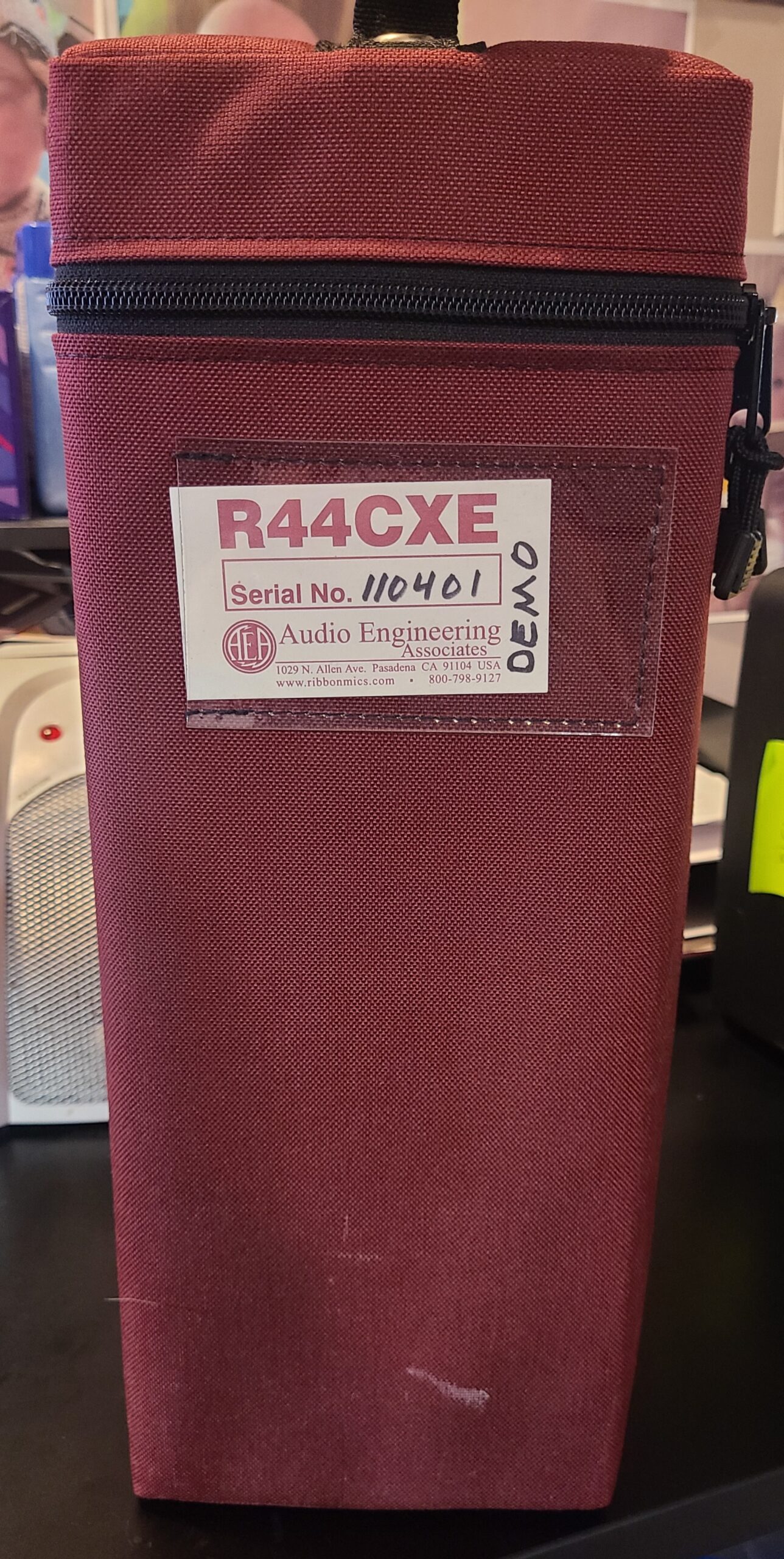Comes with a new 44 zipper bag and a used, red vertical case with a blemish on one side. One year warranty on all B-stock mics with registration within 90 days of purchase.
