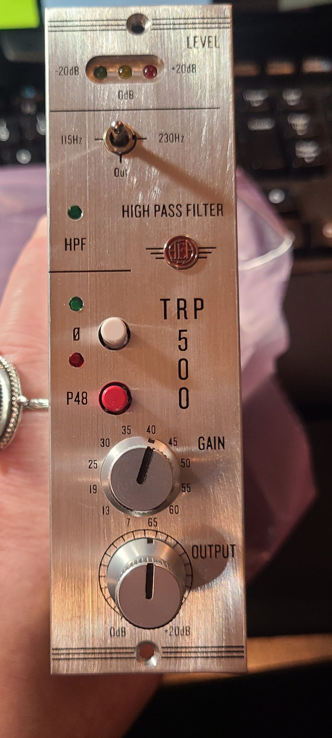 This TRP500 is an R&D unit that was made to compare the subjective quality of various JFETs. As you can see, this TRP500 features LSK389s, which were used on all Gen 2 AEA Preamps. We have since switched to a different JFET for our front end. But for this limited time, you can buy this unit and conduct a pure comparison yourself, as the circuit and op-amps are that of the Gen 3 preamp line. This unit can be safely considered Gen 2.6. These units have a raw aluminum front plate due to my impatience with the long anodization lead time.