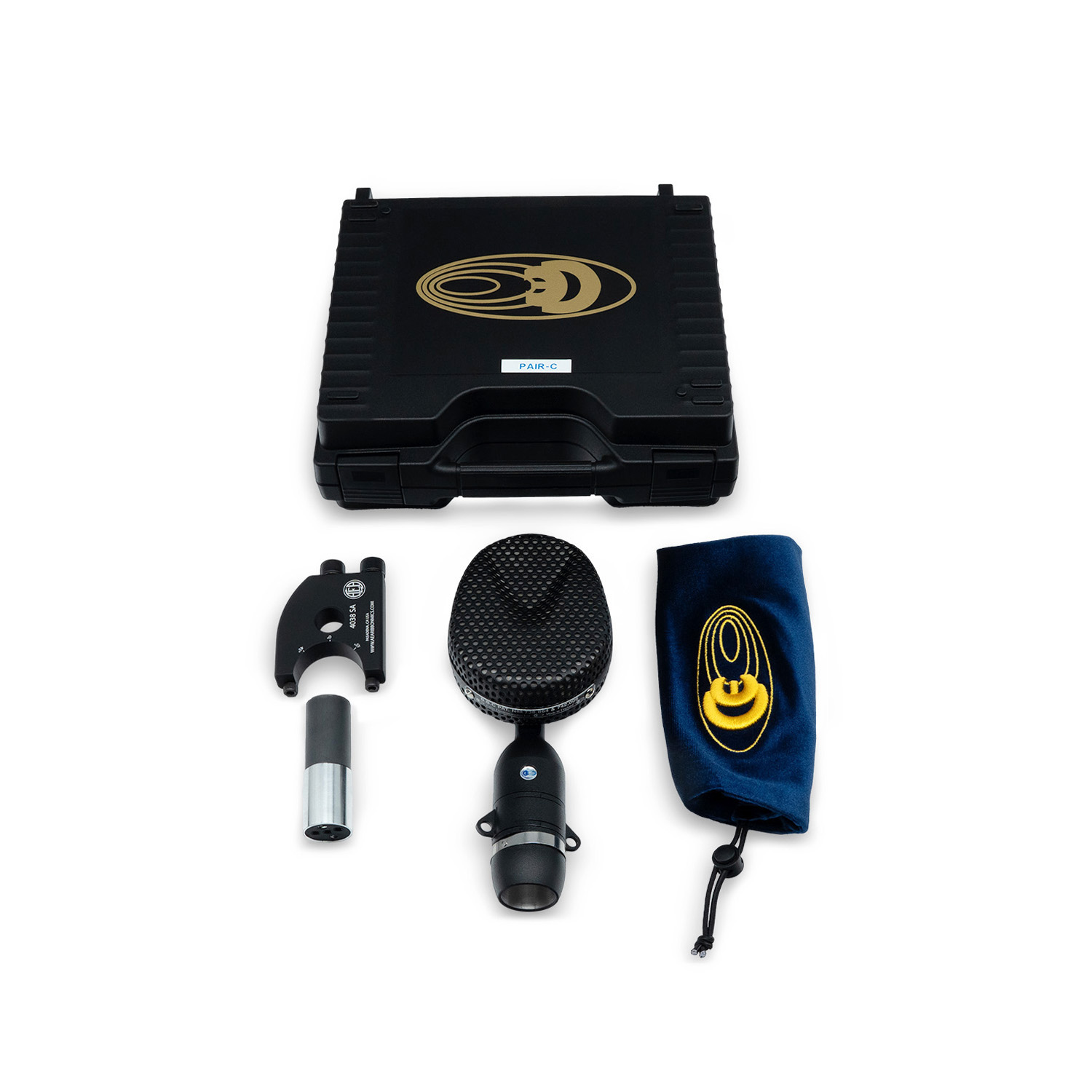 Matched pair of Coles 4038 mics with hard-case, blue velvet bag, 4069 XLR adapter & AEA 4038SA stand adapter and the SMS stereo bar kit.