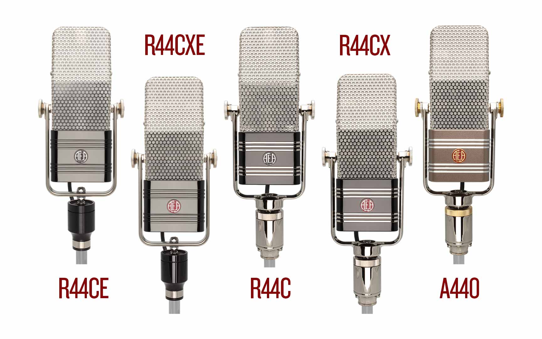 We offer five variations of the R44. The R44C is a museum-quality replica with the look of the 1936-38 RCA mics, while the R44CE is the same exact microphone with modern AEA aesthetics. Identical in sound quality, the only difference is how they look.Â